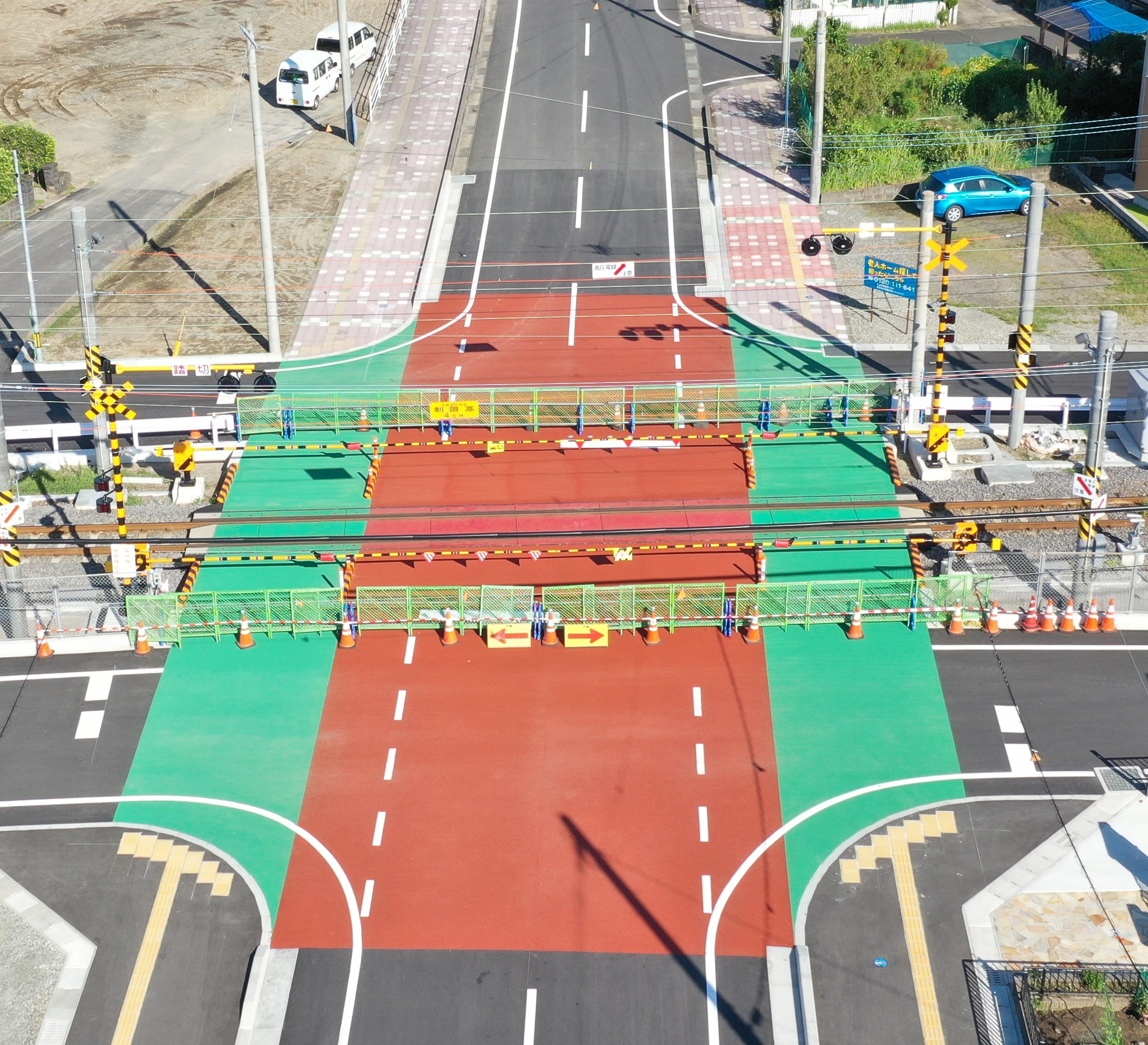 歩行者と車両が通行できる踏切に生まれ変わる移設拡幅となり、