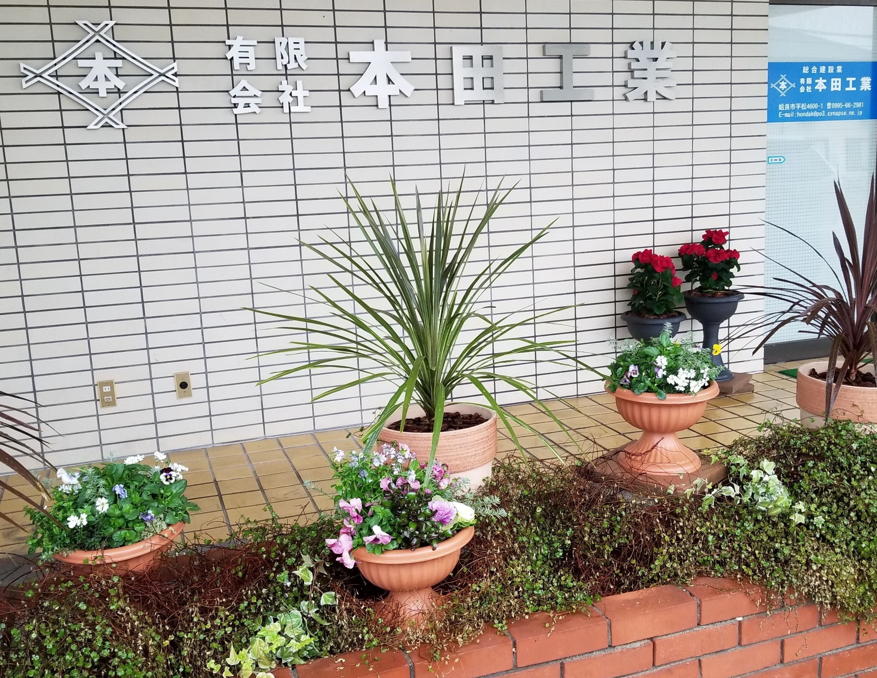 そして、会社玄関が明るくなるように花壇を整えました♪