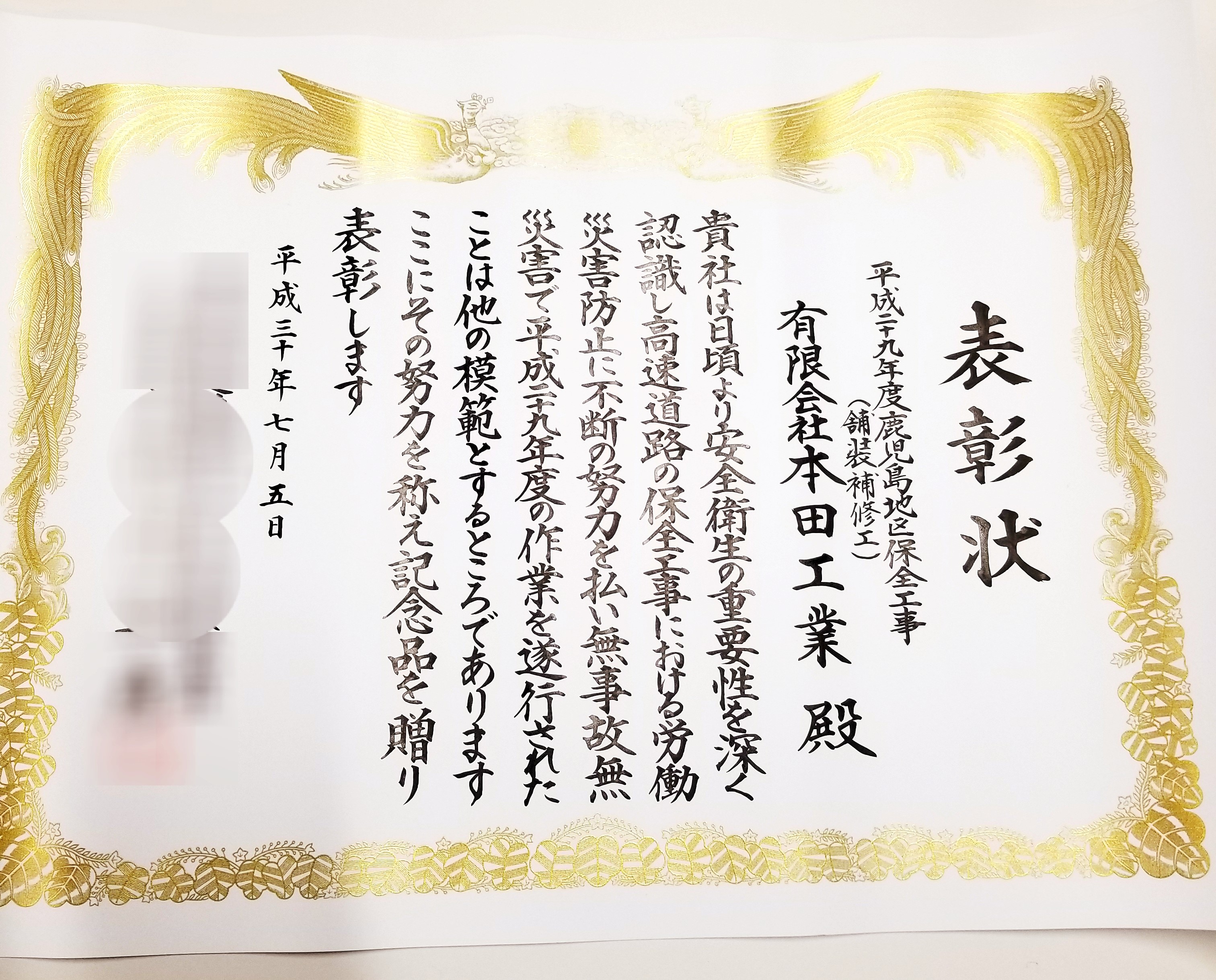 無事故無災害で工事を終えたことを表彰されました♪